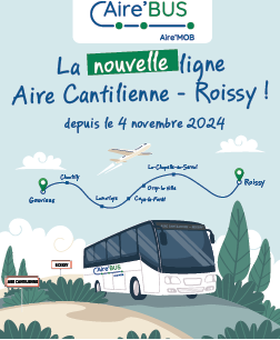 La ligne de cars AIRE’BUS permet de se rendre facilement à l’aéroport Roissy Charles de Gaulle en moins d’une heure. AIRE’BUS est accessible à tous, pour aller prendre un avion ou un TGV mais également aux nombreux actifs de notre territoire qui travaillent sur la plateforme.
