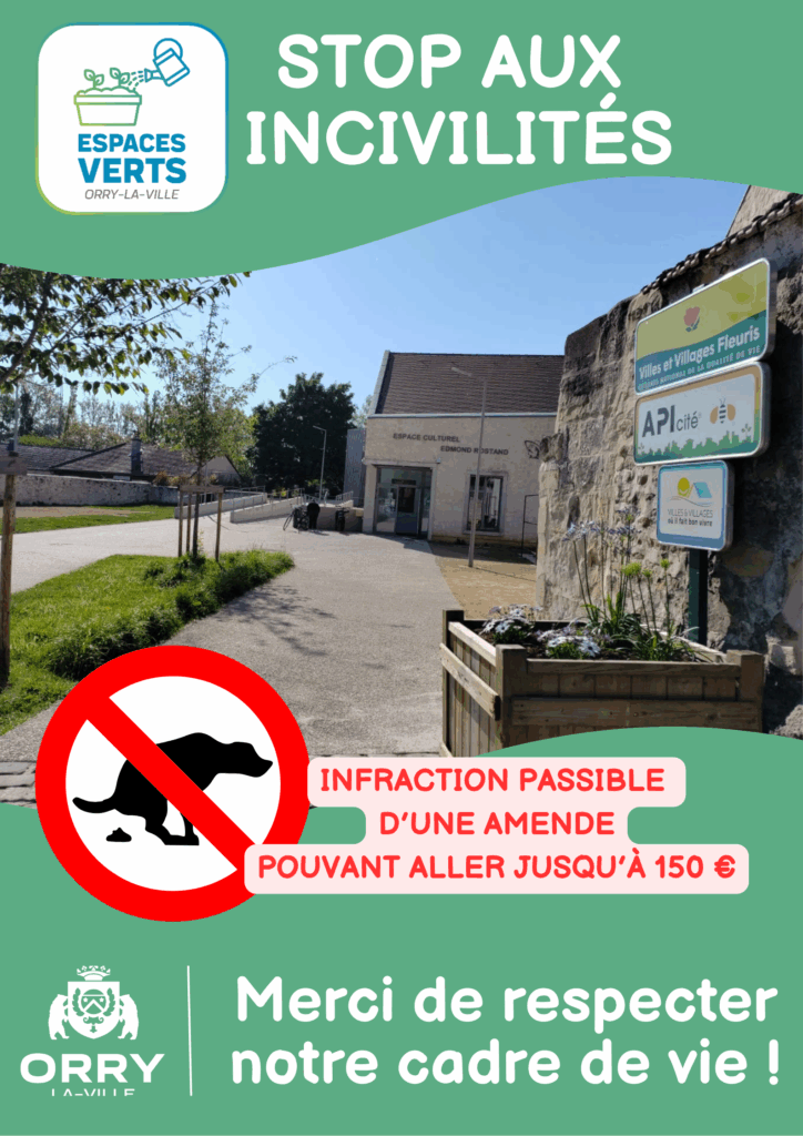 - Des « canicrottes » (points de distribution de sacs à crottes, avec poubelle) sont installés à différents endroits de la commune (esplanade Anne-Lorraine, devant le gymnase, place de l’abbé Clin, au city-stade, au Calvaire, voie douce rue Jacques Maillet), ils sont à disposition des Orrygeois
