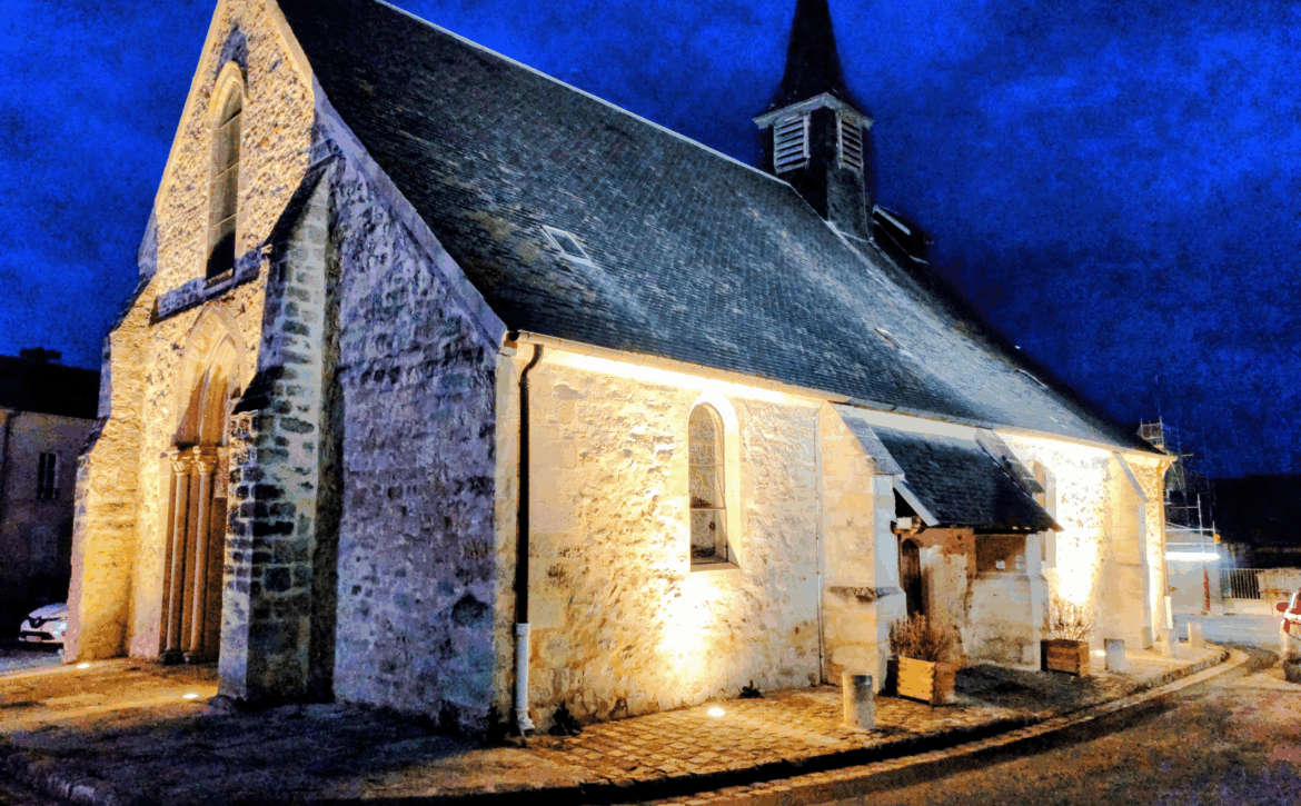 Des travaux ont eu lieu courant octobre pour installer des spots lumineux au sol et aux abords de l’église. Ils éclairent la façade, la toiture, le clocher, mettent en valeur ses belles pierres, projetant un superbe jeu d’ombres sur l’édifice.